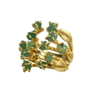 Emerald, Pink quartz, Amathyst,