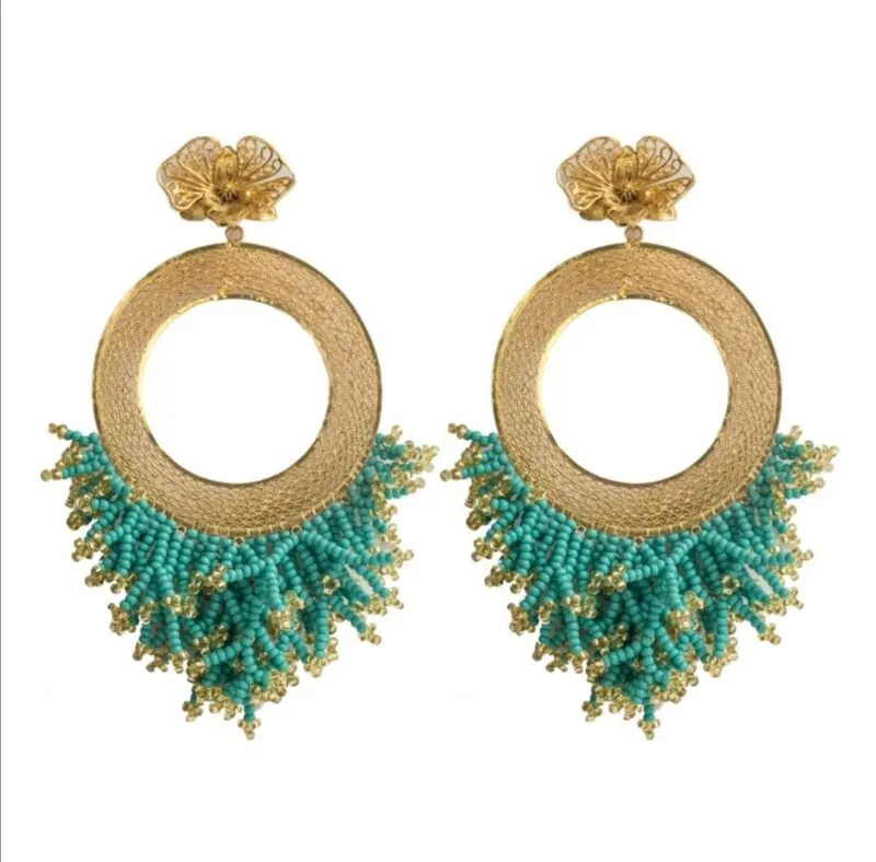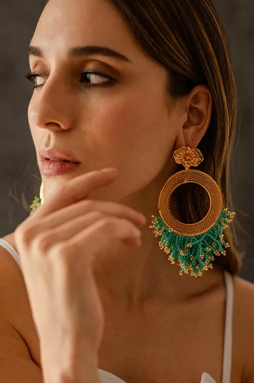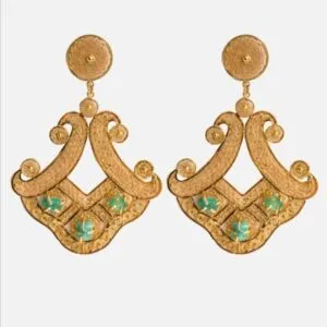 Candonga elaborado en la técnica ancestral filigrana, tejido a mano en hilos de bronce con baño de oro de 24k.