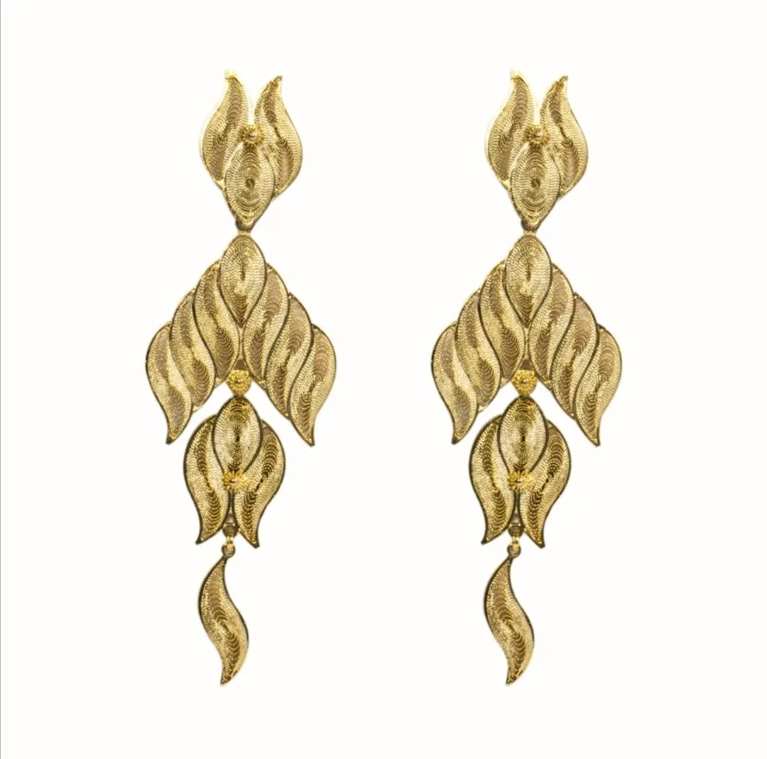 Earring made in the ancestral filigree technique, hand-woven in 24k gold-plated bronze threads.