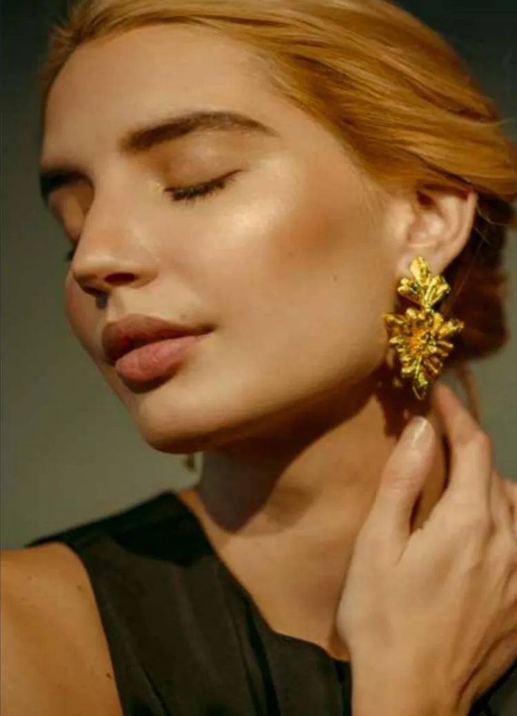 Arete elaborado en la técnica ancestral filigrana,tejido a mano en hilos de bronce con baño de oro de 24 K. Incrustacion de piedras semi preciosas.