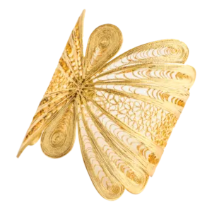 Brazalete elaborado en la técnica ancestral filigrana,tejido a mano en hilos de bronce con baño de oro de 24 k.