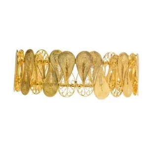 Cadena elaborada en la técnica ancestral filigrana,tejido a mano en hilos de bronce con baño de oro de 24 K. Con dije trabajado en la misma técnica.