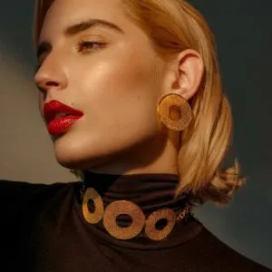 Choker elaborado en la técnica ancestral filigrana, tejido a mano en hilos de bronce con baño de oro de 24 k.