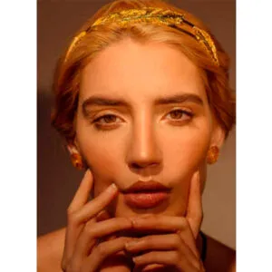 Diadema elaborado en la técnica ancestral filigrana, tejido a mano en hilos de bronce con baño de oro de 24 k.